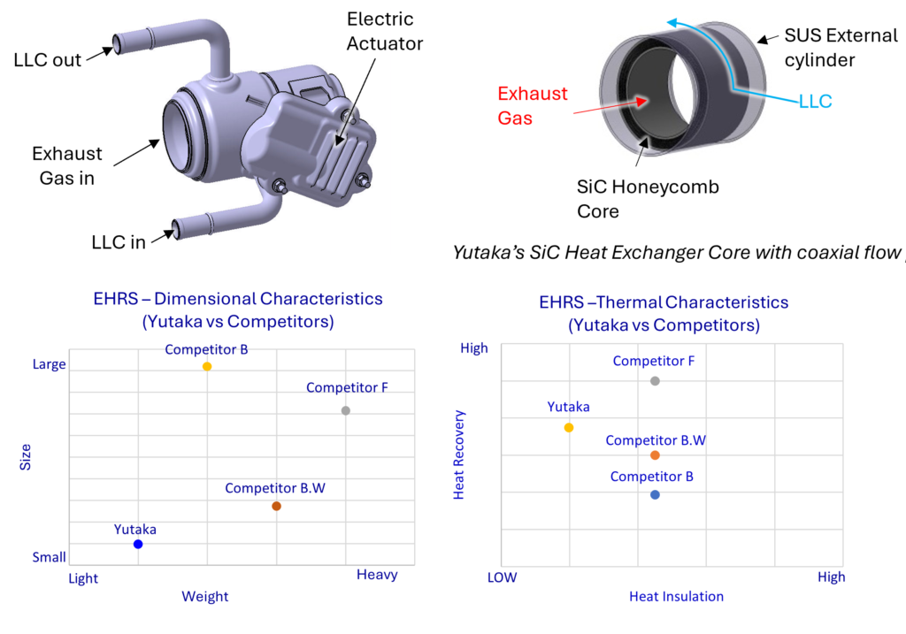 Yutaka has developed one of the most lightweight, compact and efficient EHRS solutions on the market utilizing the unique application of a SiC (Silicon Carbide) honeycomb core. EHRS implementation can help OEMs qualify for the EPA off-cycle credits (Engine & Transmission).